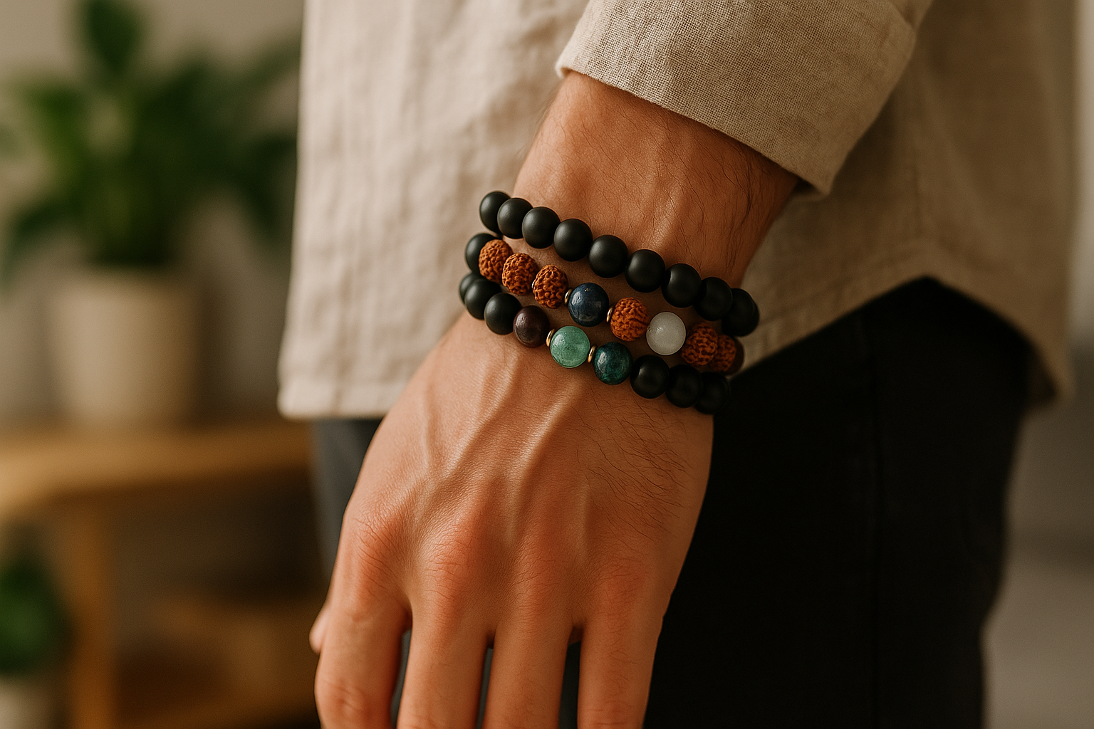 Natural 7 Mukhi Rudraksha Bracelet – 14 Beads | Certified Spiritual Healing Bracelet
