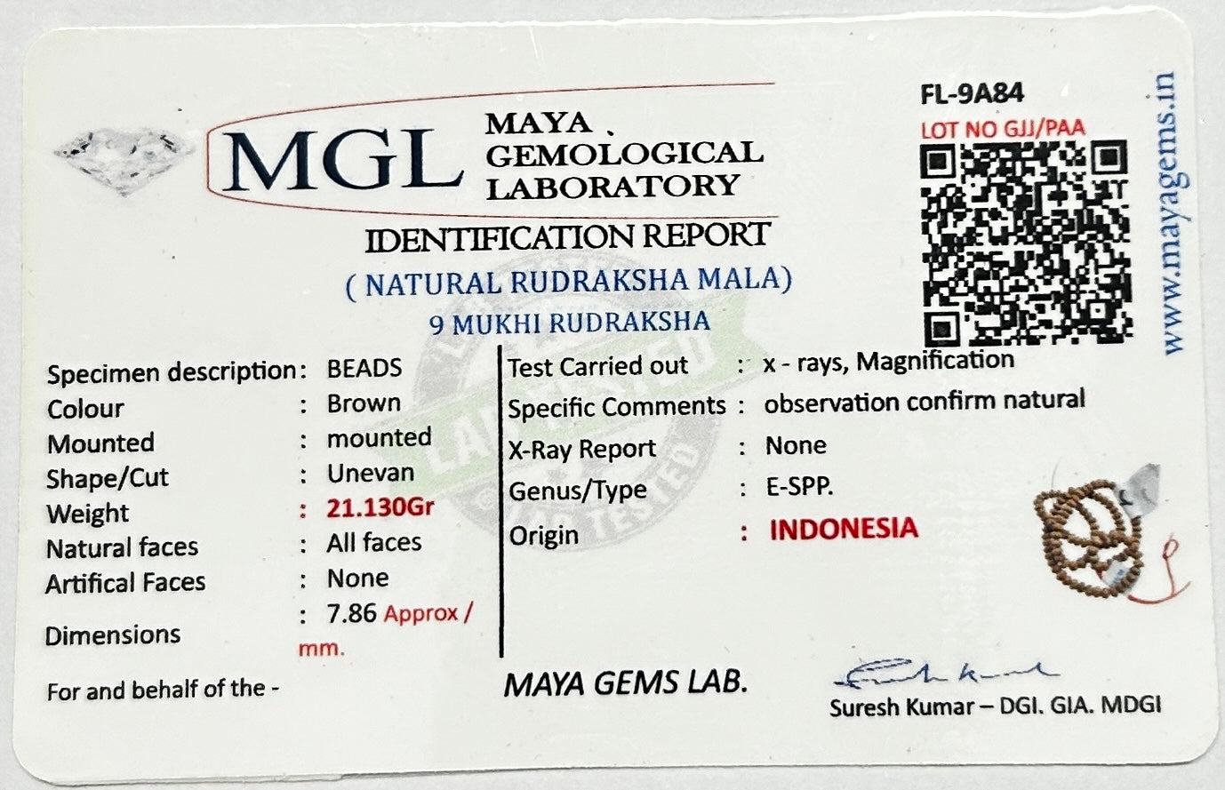 Certified Natural 9 Mukhi Rudraksha Mala – Pure & Divine